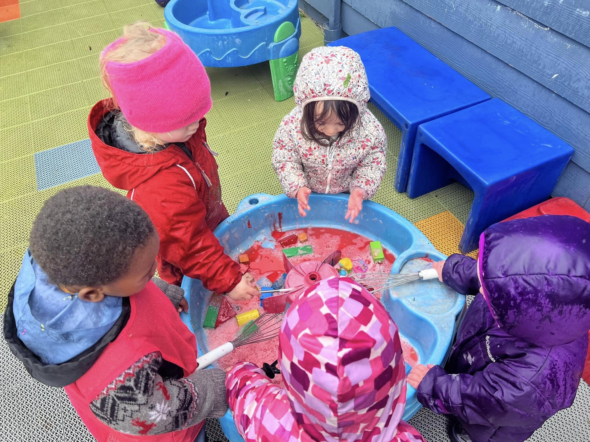 Educators support toddlers through predictable daily rhythms that include circle time, music and movement, creative expression, science and sensory exploration, and indoor and outdoor play. Through positive role modelling and responsive guidance, children are supported to navigate routines, express themselves, and build social connections.